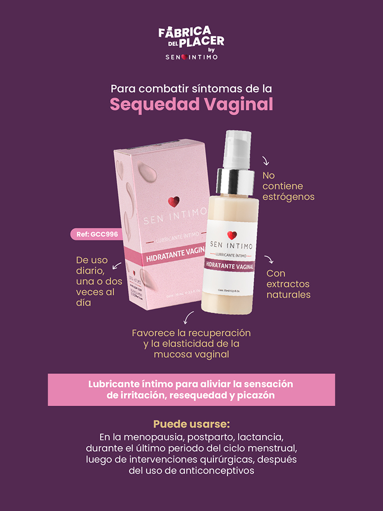 El Hidratante Vaginal Sen Íntimo, favorece la recuperación y la elasticidad de la mucosa vaginal, ideal para la resequedad que ocurre en la menopausia, embarazo, post parto, uso de pastillas, tratamientos médicos, diabetes, hipertensión, entre otros.