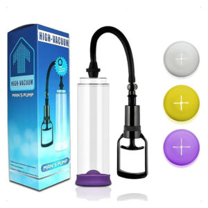 Bomba de pene manual con mango, botón de descompresión rápida y 3 anillos de base de silicona de diferentes diámetros, desarrollada para tratar los órganos sexuales subdesarrollados y la impotencia masculina. Indicado para facilitar el flujo sanguíneo al pene.